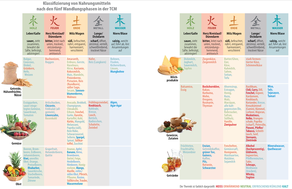 Alle Nahrungsmittel werden nach ihrem thermischen Charakter beurteilt: